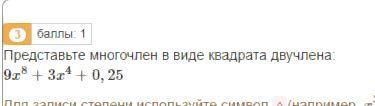 9х⁸ + 3х⁴ + 0,25 = (3х⁴)² + 2·3х⁴·0,5 + (0,5)² = (3х⁴ + 0,5)².