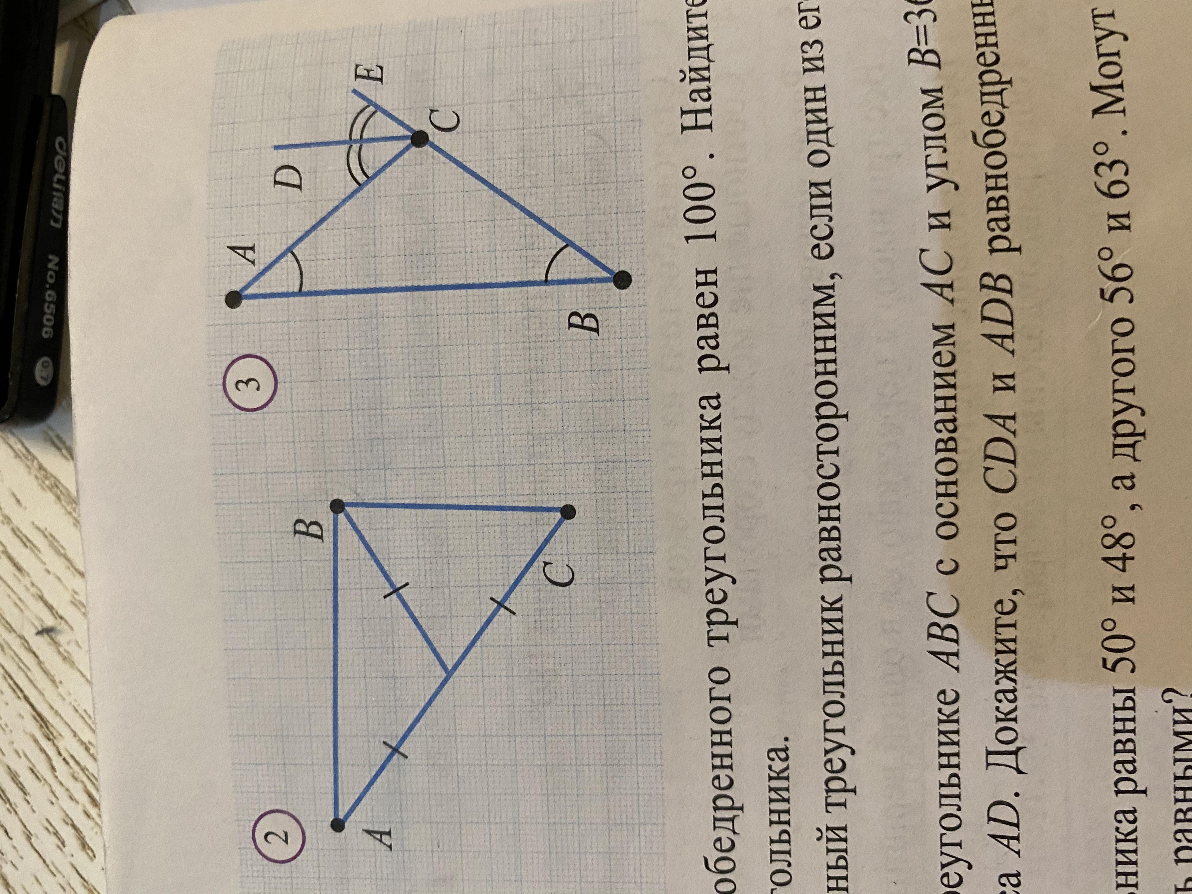3)<ACE - внешний угол треугольника ABC, значит, он равен сумме двух внутренних углов треугольника ABC, не смежных с ним, т. е.
