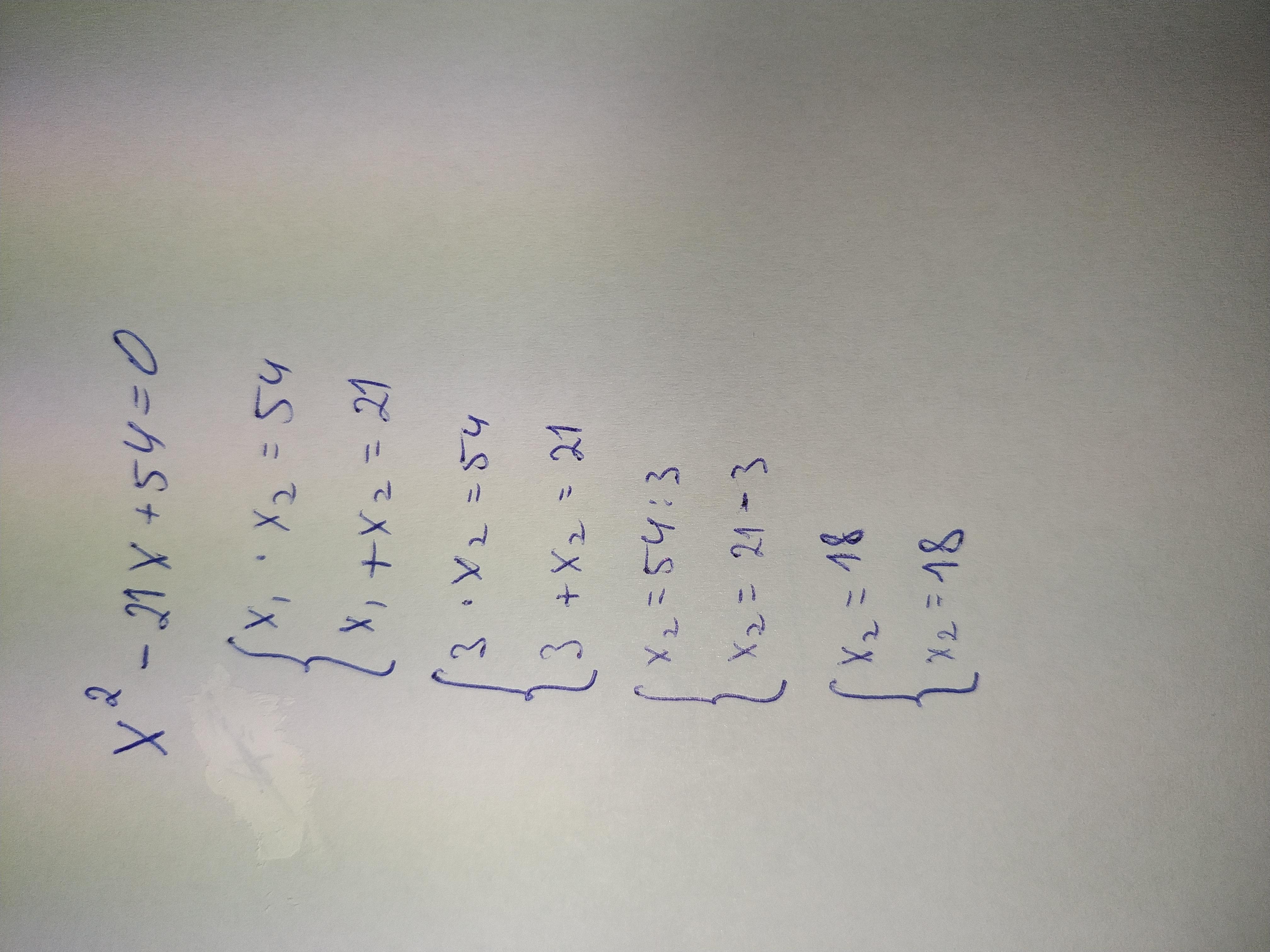 Один із коренів квадратного рівняння дорівнює 3. Знайди другий корінь рівняння х^2- 21х + 54 = 0.