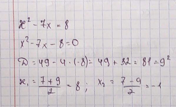 х^2-7х-8=0