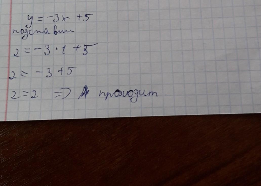 так , проходить , підставляємо замість ікса 1 , а замість ігрика 2 й отримуємо 2= 2