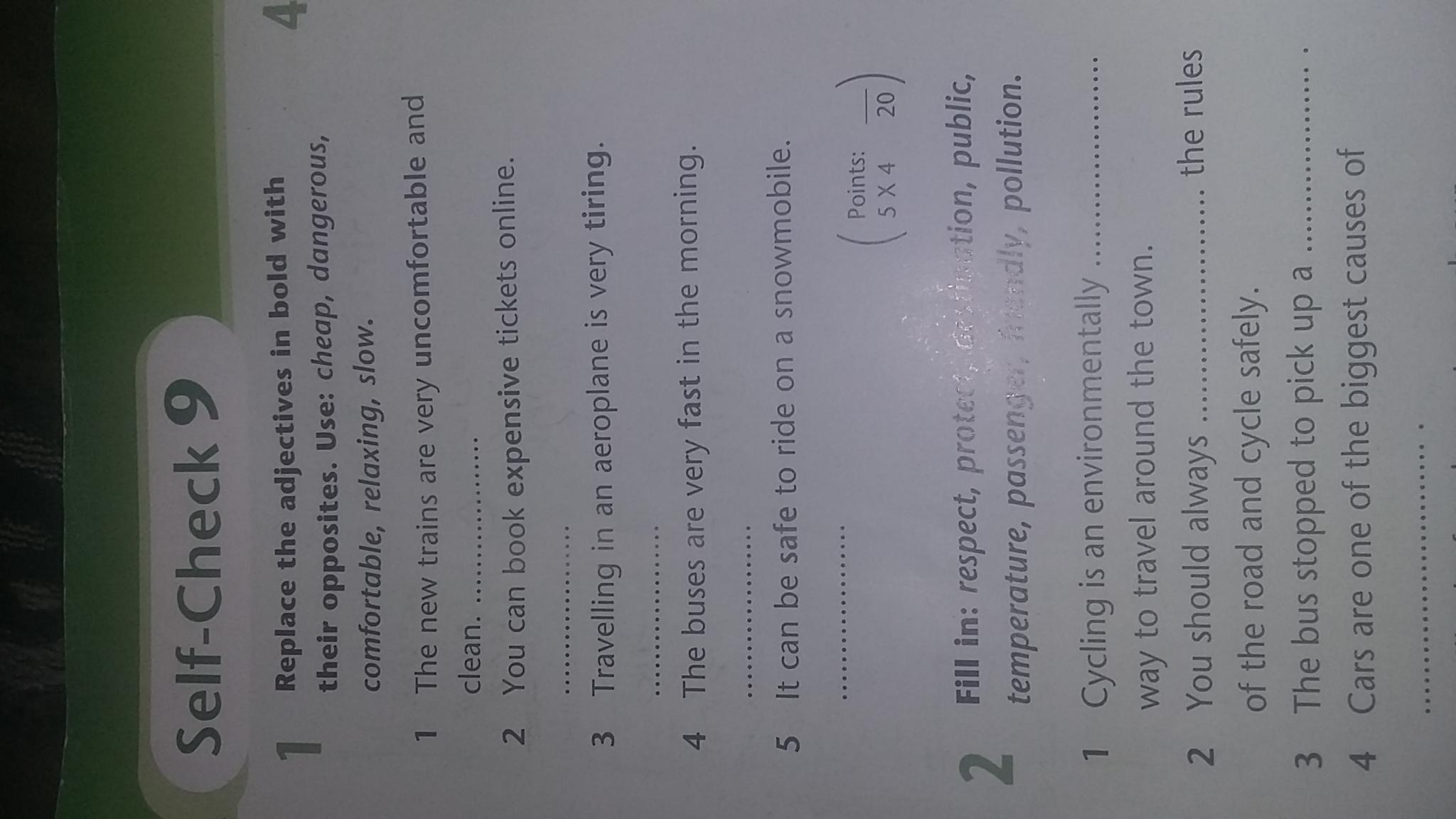 1.comfortable 2.cheap 3.relaxing 4.slow 5.dangerous
