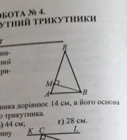 Вм — висота рівнобедреного трикутни- ка ARB (RA КB), проведена до бічної сторони АR, ВМ 3 см, RB 6 см. За ри- сунком знайти кути трикутника.