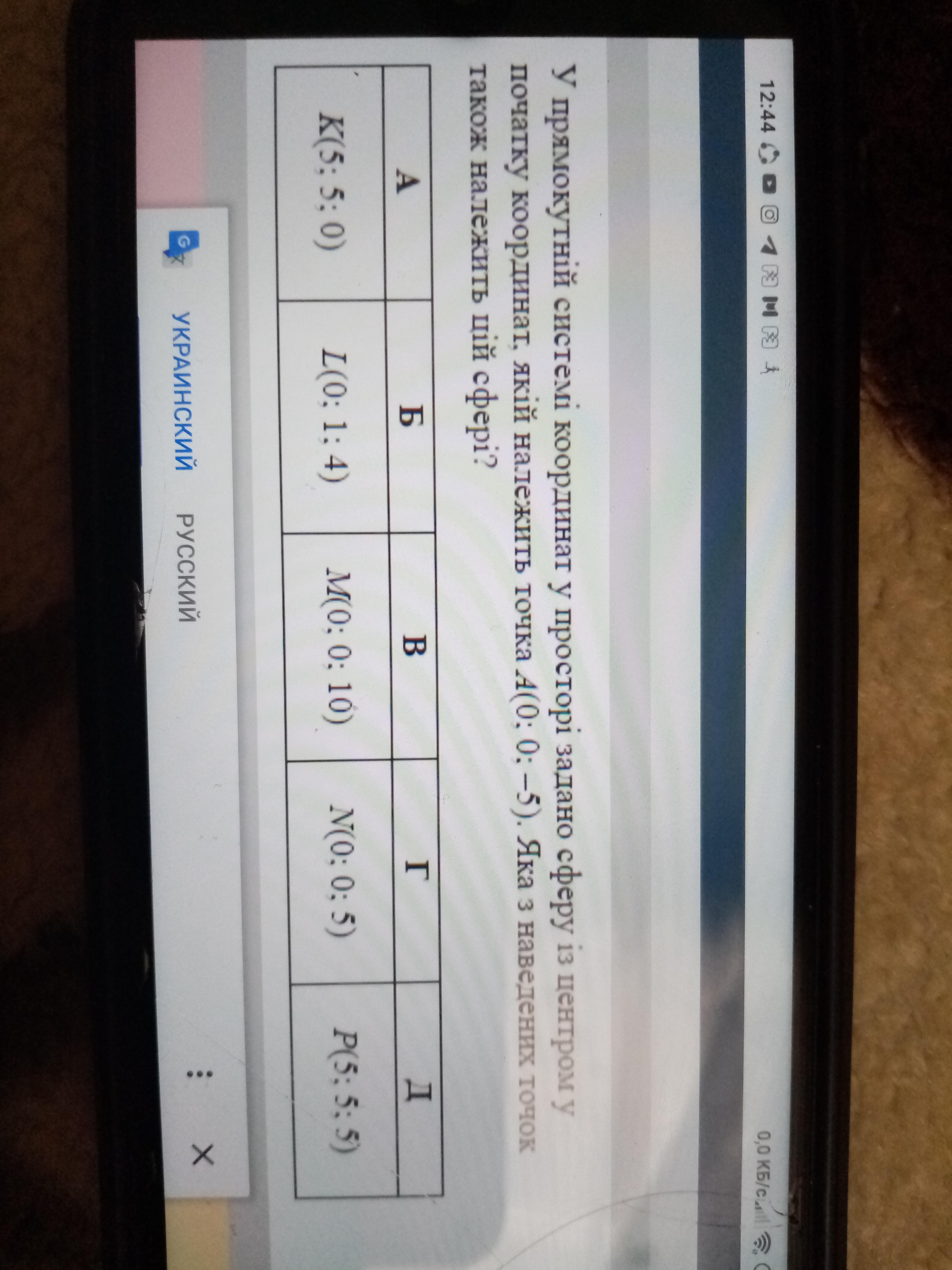 Ответ: Точка Г належить цій сфері