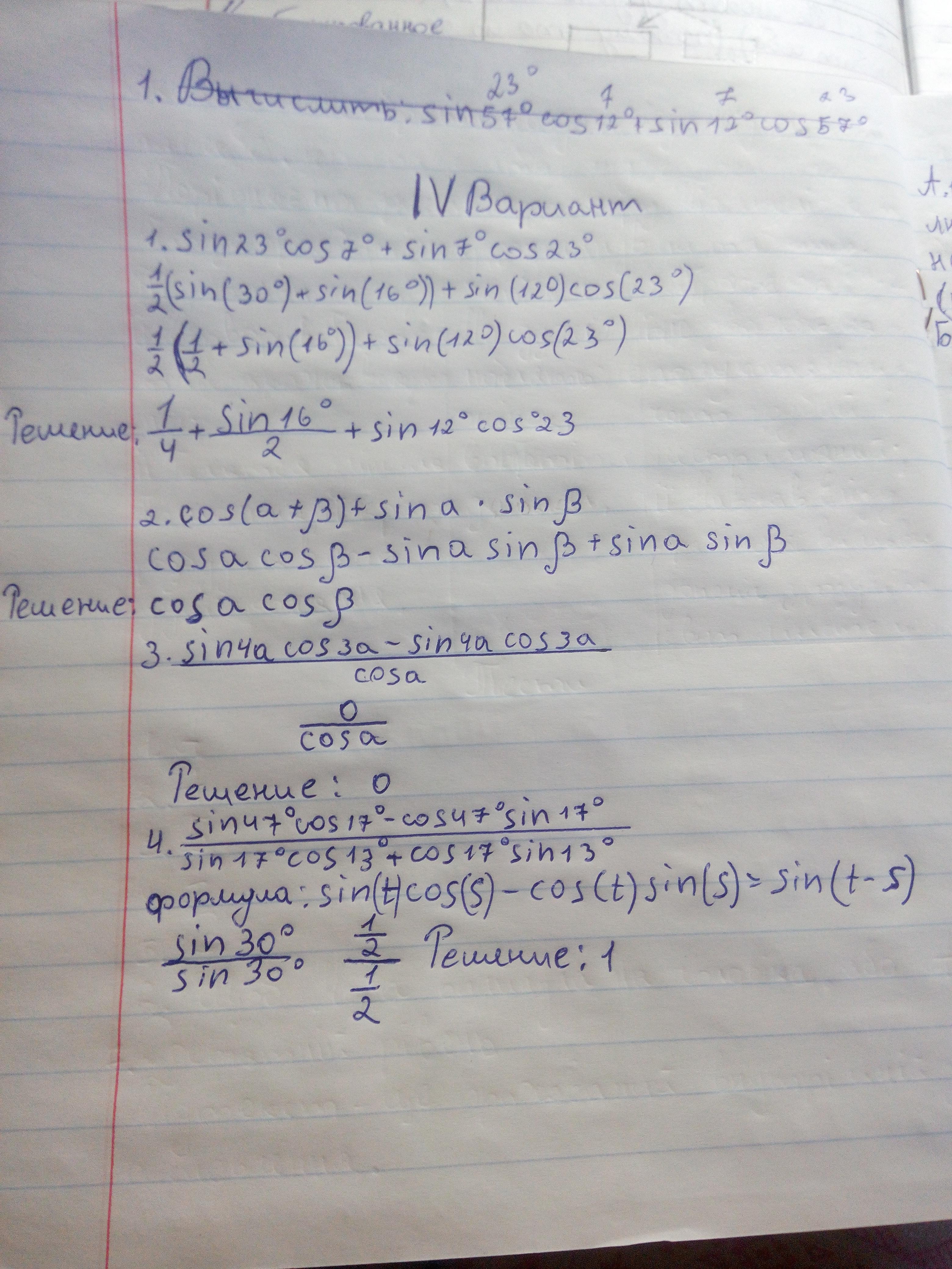 Ответ:решения на листочка IV Вариант