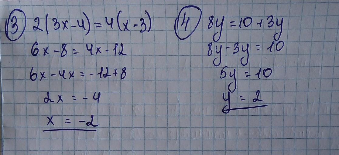 Решительно уравнение : 2*(3х-4)=4*(х-3) и 8у=10+3у