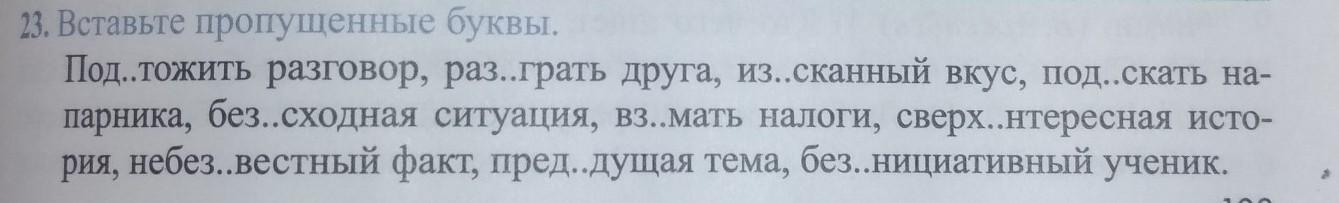 Ответ: подытожить, разыграть, изысканный, подыскать, безисходная, взимать, сверхинтересная, небезызвестный, предыдущая, безинициативный