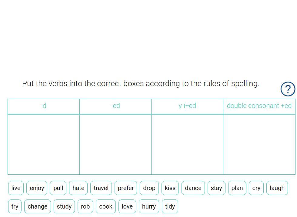 Enjoyed, pulled, traveled, kissed, stayed, laughed, cooked.