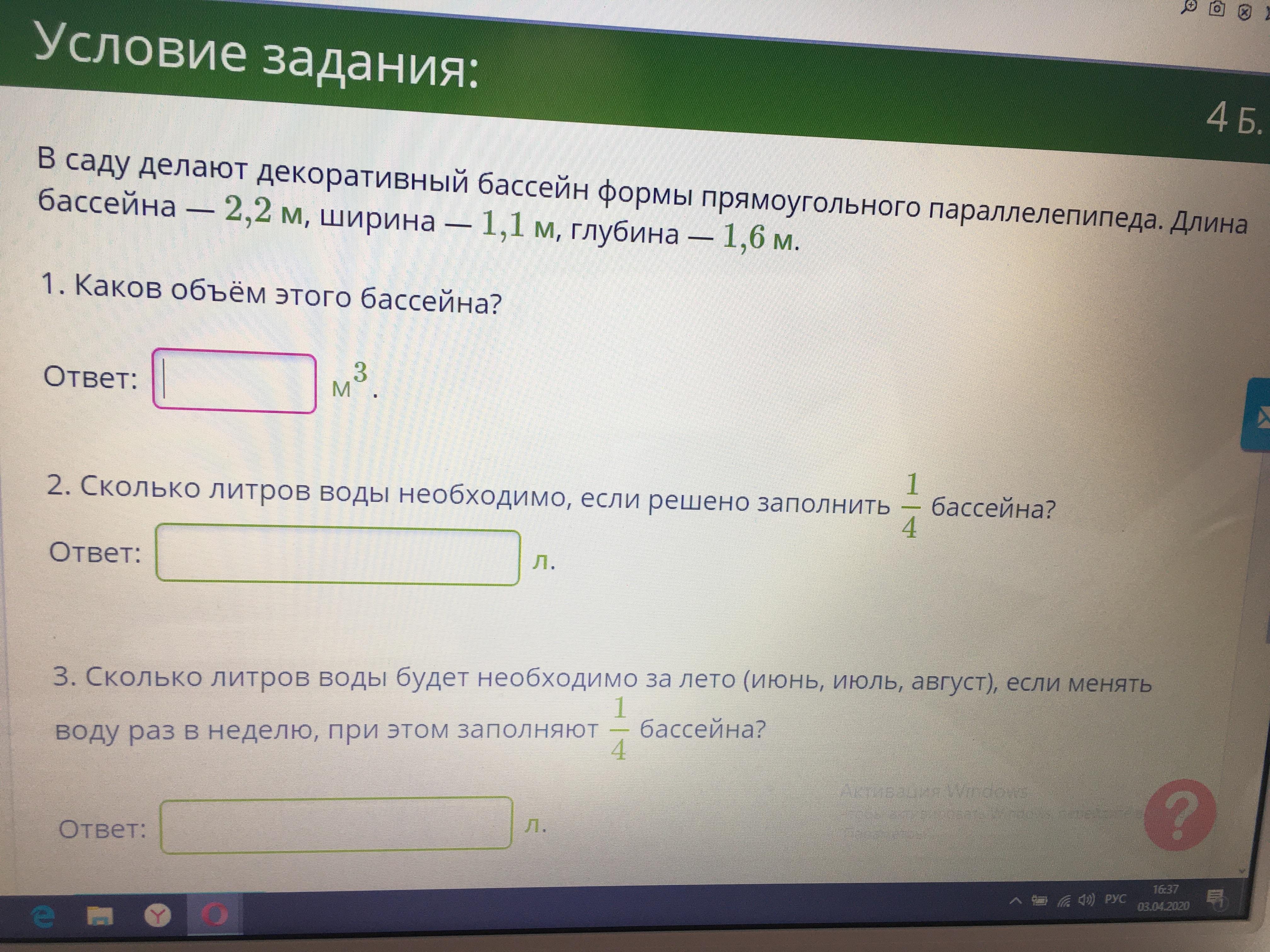 2) 3,872*(1/4)=0,968(м³) заполнить необходимо.
