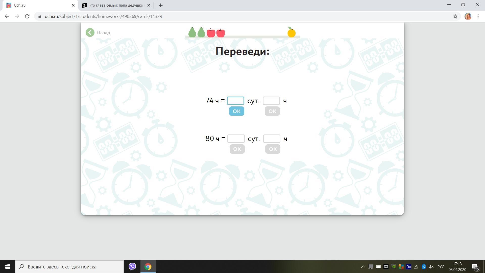 в сутках 24 часа, значит надо делить на 24+ остаток