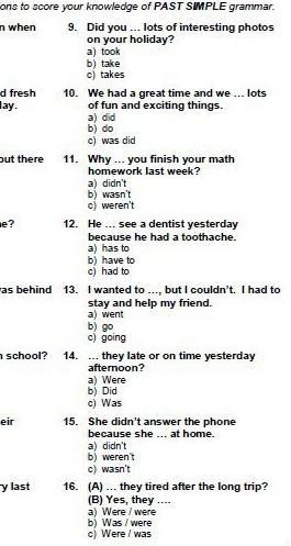 9.took. 10 did. 11..wasn't. 12. has to. 13. went. 14.did.15.wasn't.16.were were