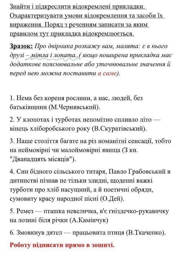 5.Прикладкою є, "пташка невеличка", бо це пояснення до слова Ремез, тобто ("Ремез хто? пташка невеличка")