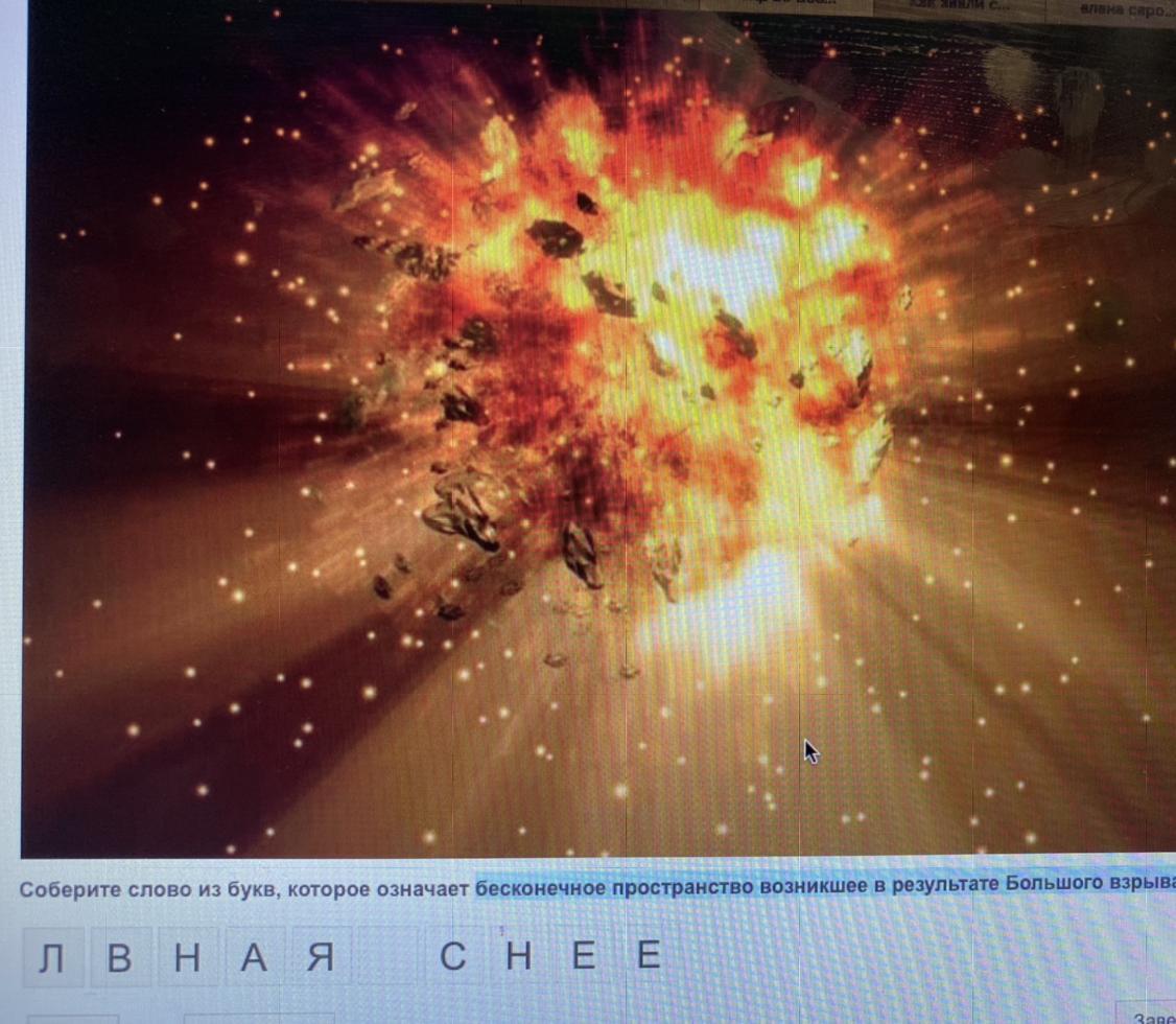 Соберите слово из букв, которое означает бесконечное пространство возникшее в результате Большого взрыва