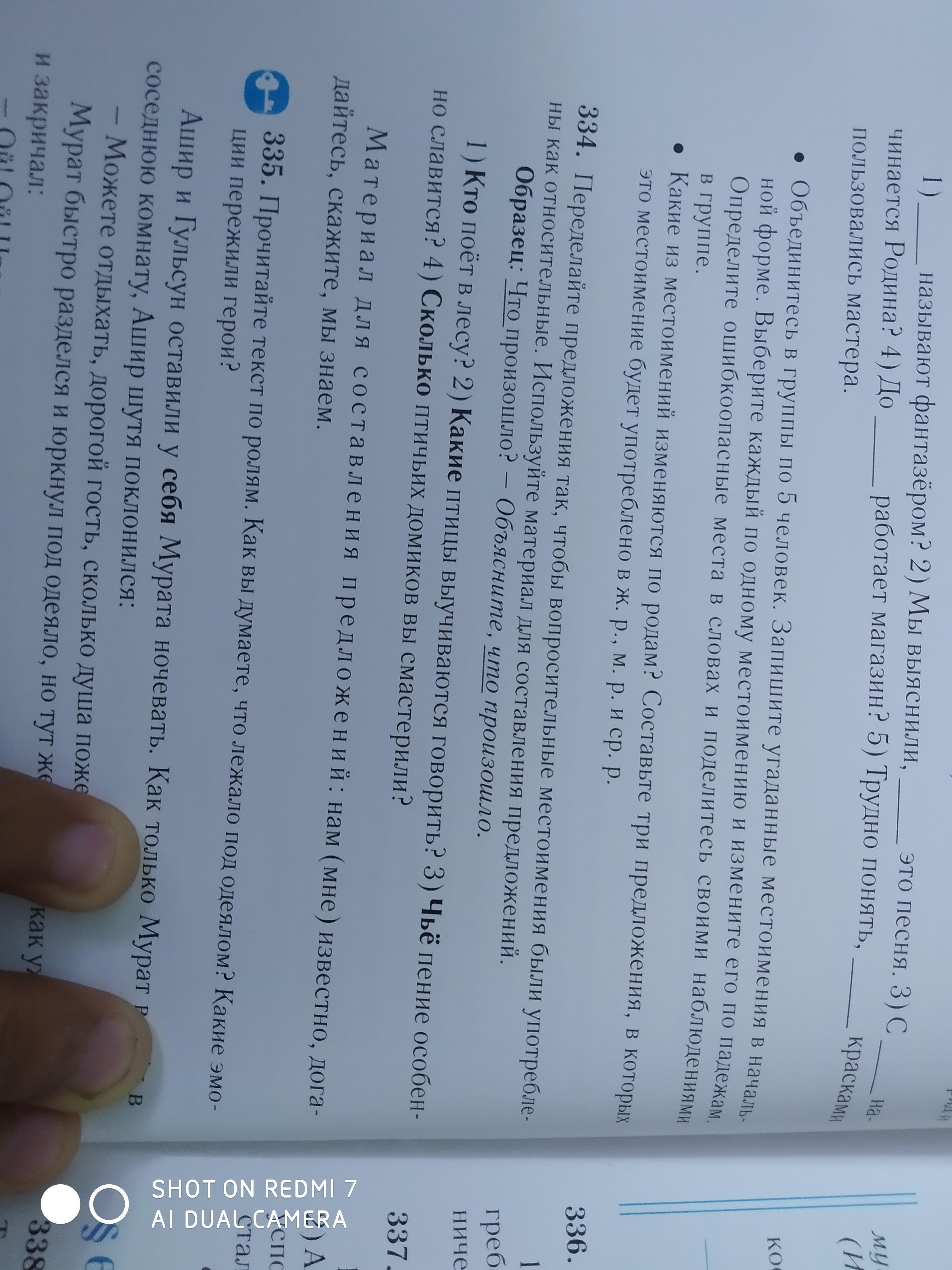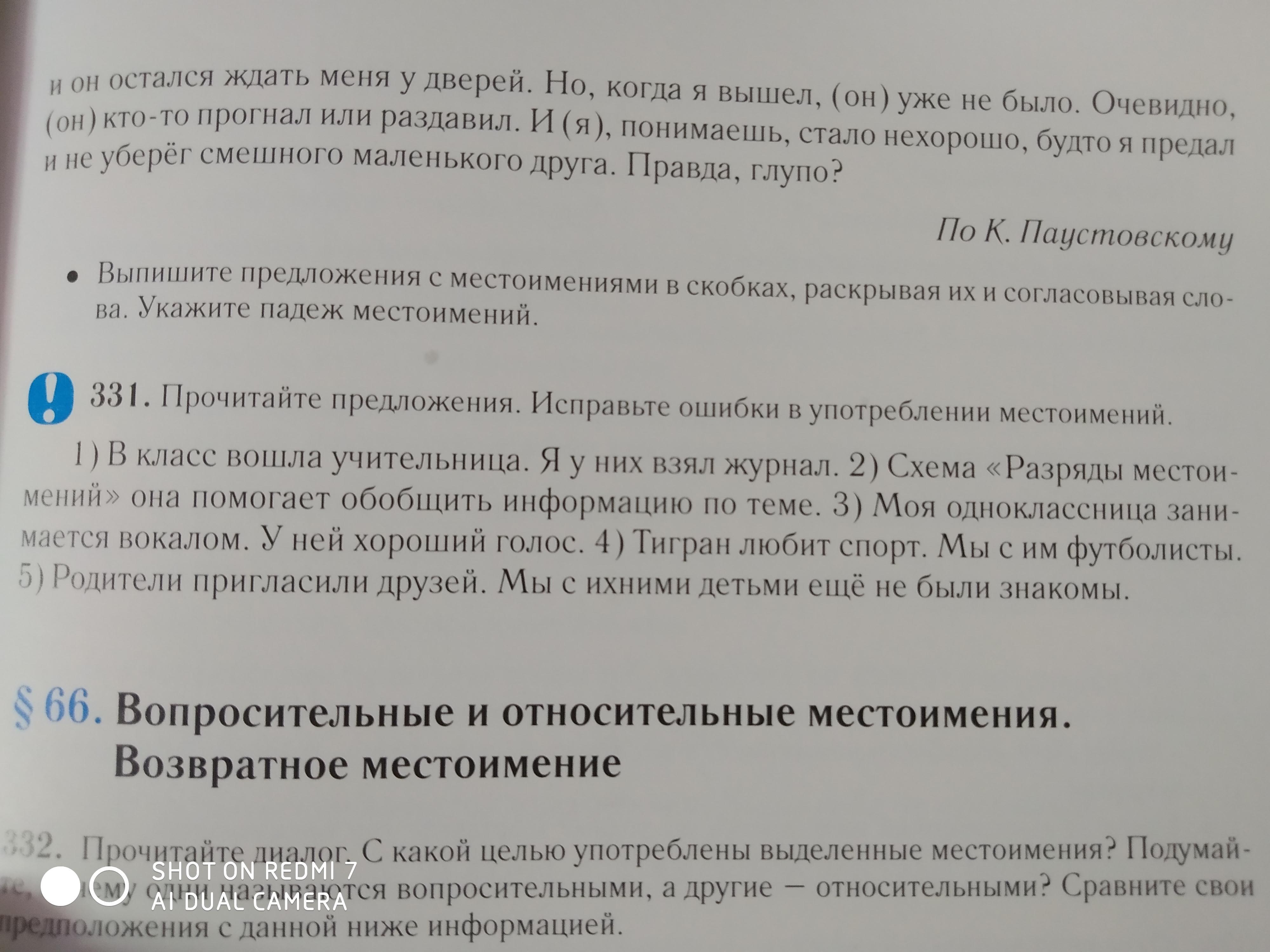 В класс вошла учительница. Я у нее взял журнал. Схема "Разряды местоимений" помогает обобщить информацию по теме. Моя одноклассница занимается вокалом. У неё хороший голос. Тигран любит спорт. Мы с ним футболисты. Родители пригласили друзей. Мы с их детьми еще не были знакомы.