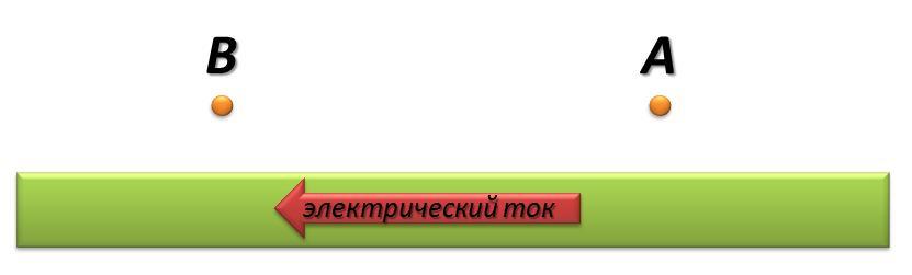 Обрати внимание, что точки A и B находятся обе сверху от проводника.