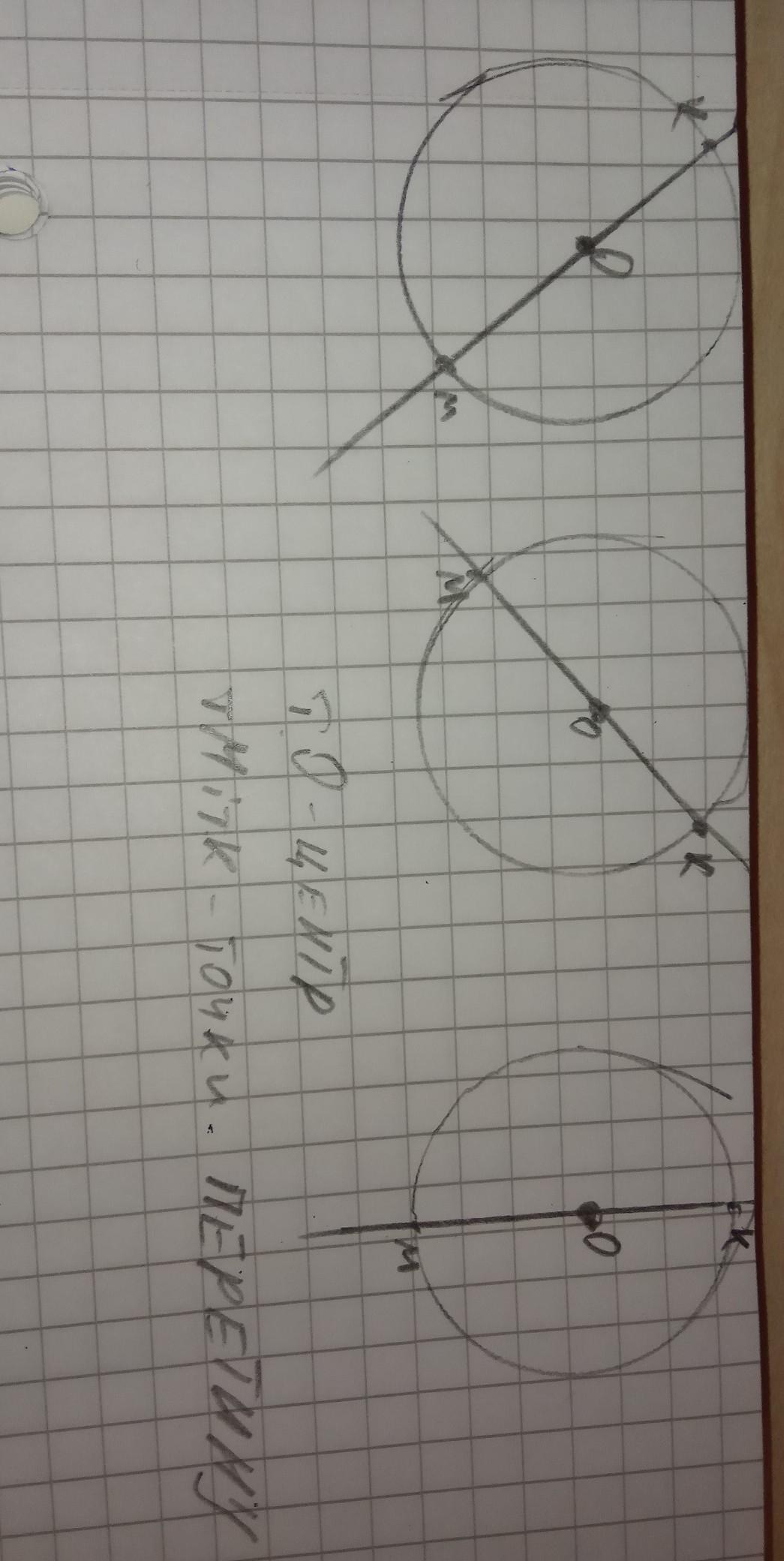 будь яка пряма, що проходить через центр кола перетинає його у двох точках