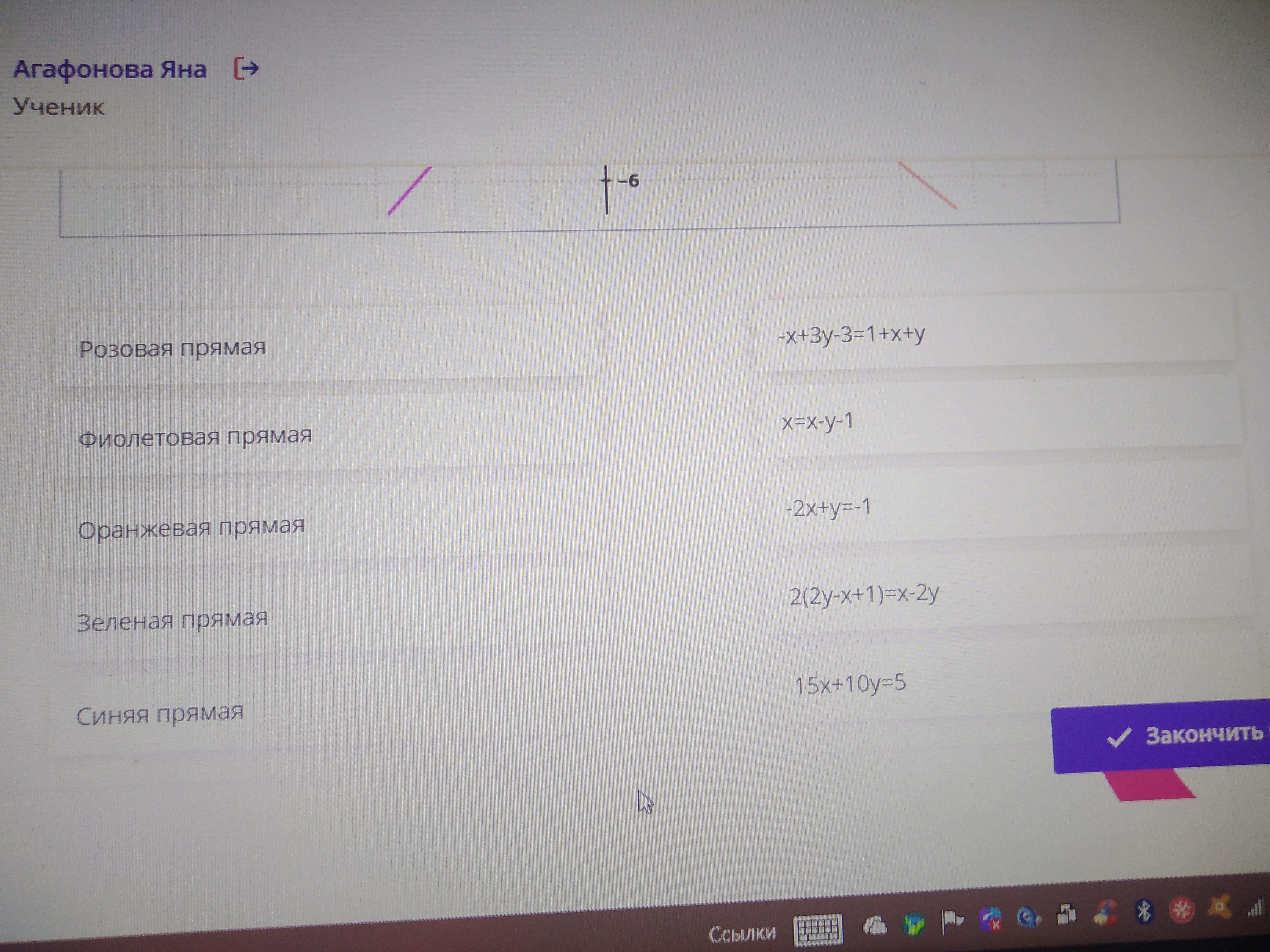 Сопоставьте соответствующие линейные уравнения с их множествами решений. Соотнесите каждую линию на графике с правильным уравнением.