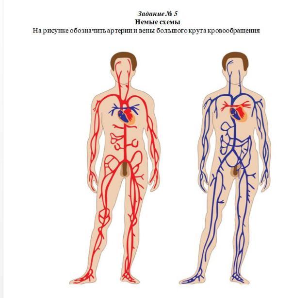 Второй вопрос: На рисунке обозначить артерии и вены большого круга кровообращения.