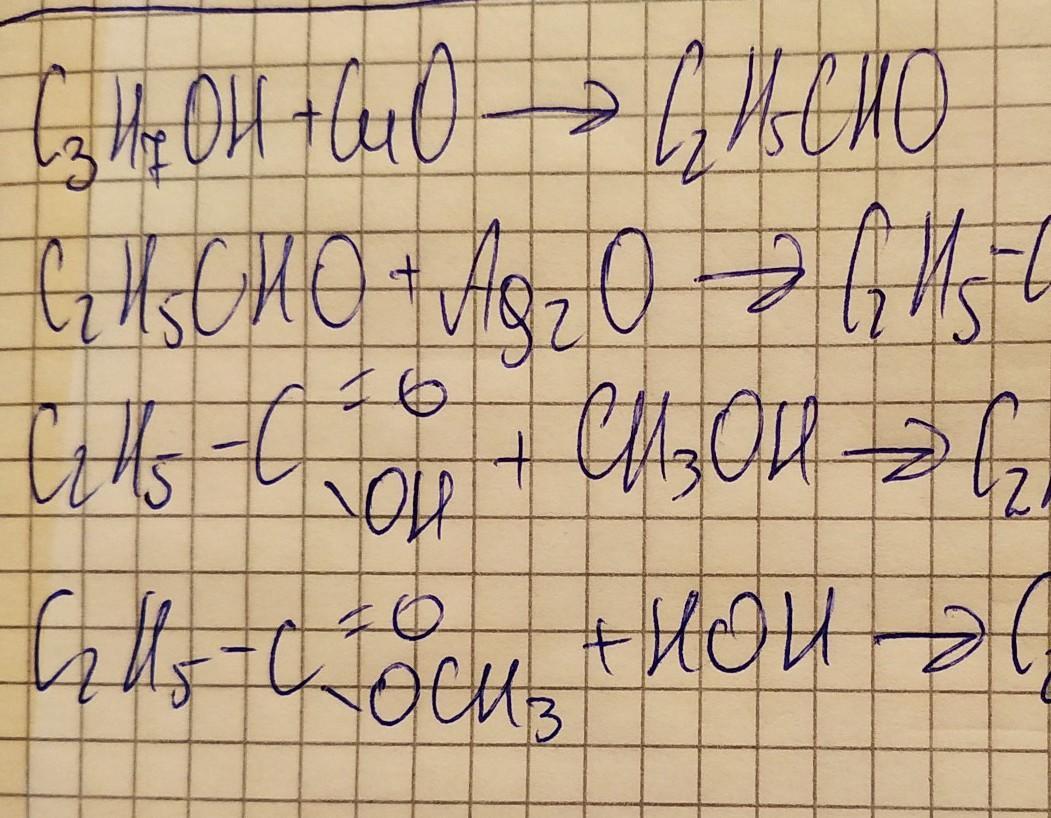 Пропанол → Пропаналь → Пропановая кислота → Метиловый эфир прорановой