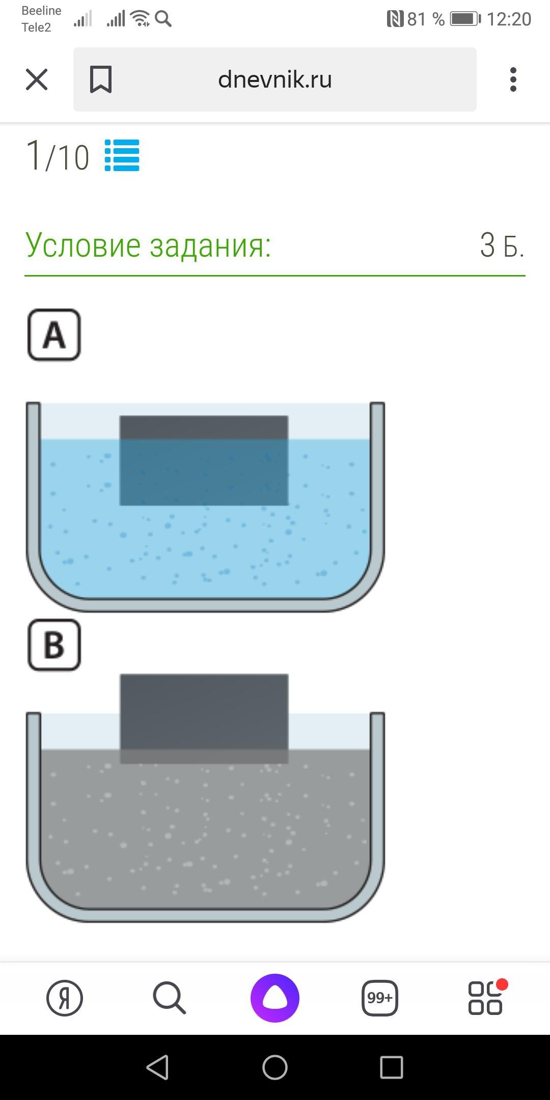 2) в воде плавает тело изображенное на рисунке А. Поскольку больше половины объема тела погружено в воду.