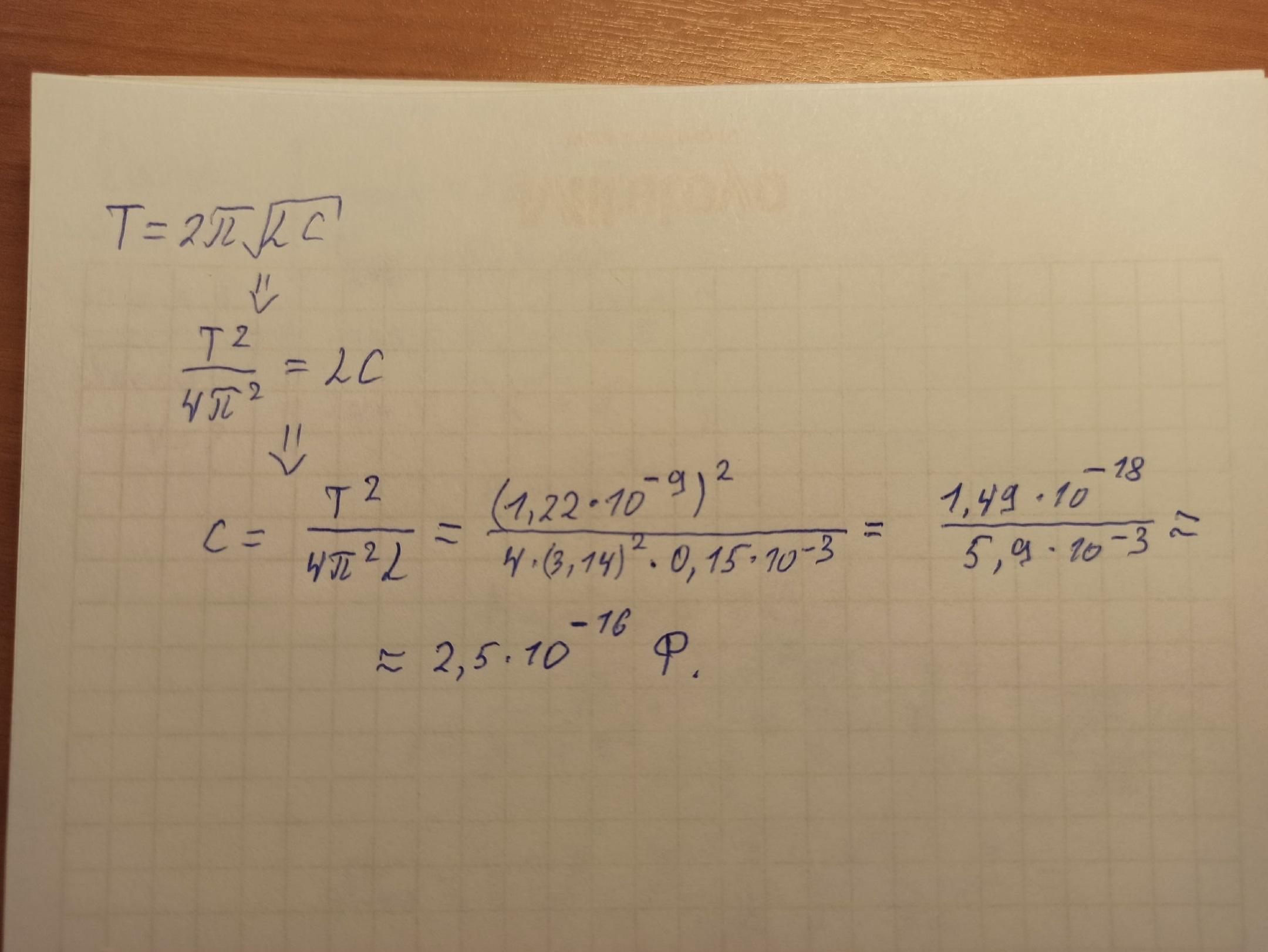 Период электромагнитных колебаний 1,22*10-9 с. Индуктивность контура равна 0,15 мГн. Определить электроемкость конденсатора.