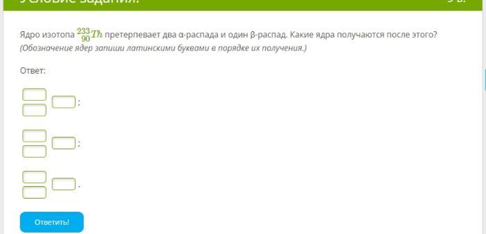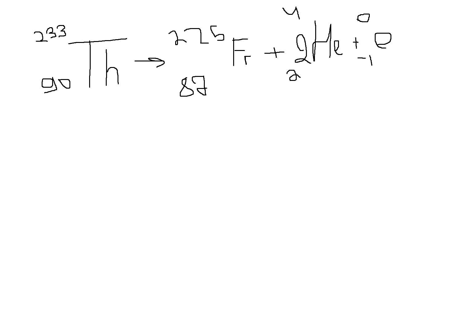 Ядро изотопа Th90233 претерпевает два α-распада и один β-распад. Какие ядра получаются после этого? (Обозначение ядер запиши латинскими буквами в порядке их получения.)