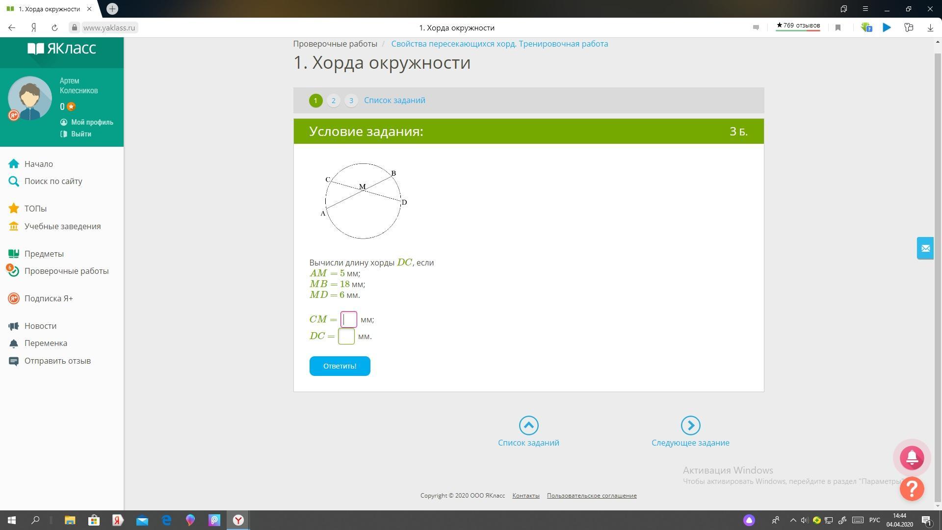 Правильный ответ: DC = 21 мм.