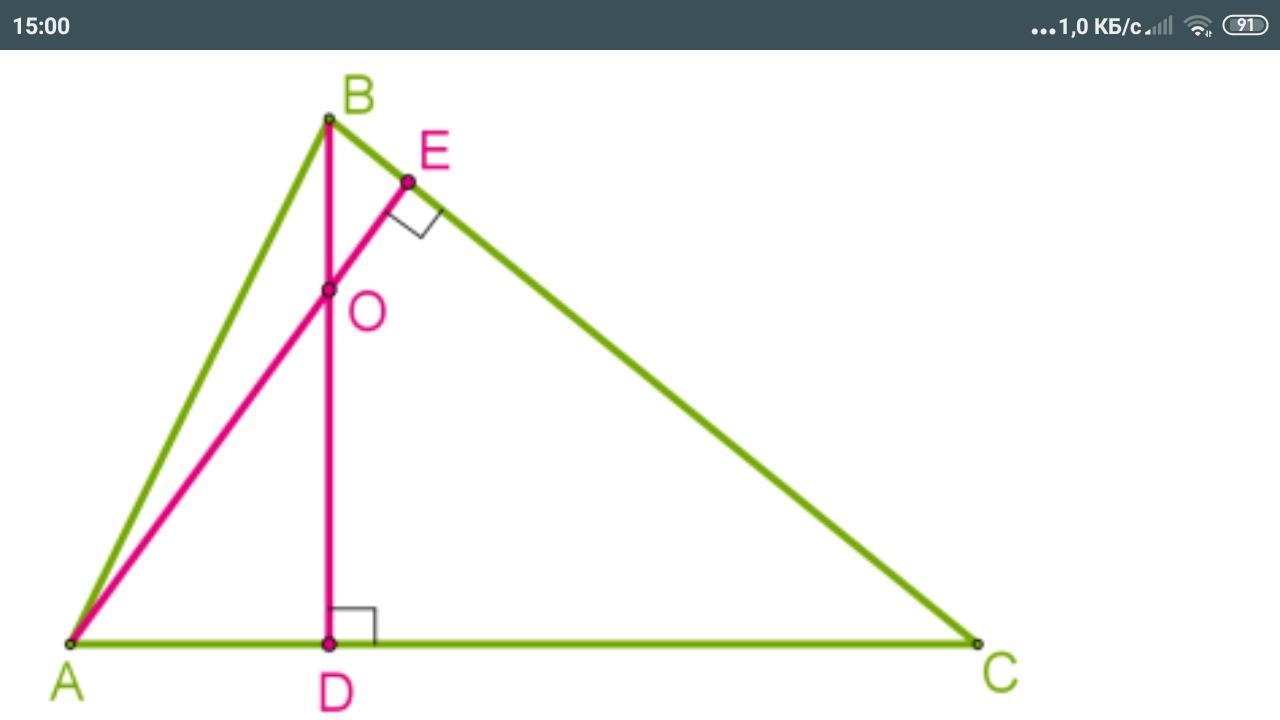 Высоты треугольника пересекаются в точке O.