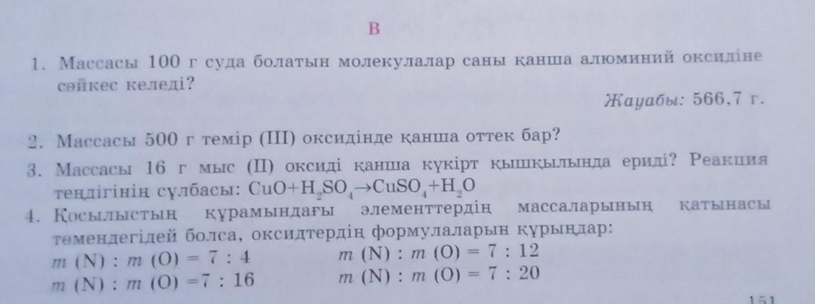 1. Массасы 100 г суда болатын молекулалар саны қанша алюминий оксидіне