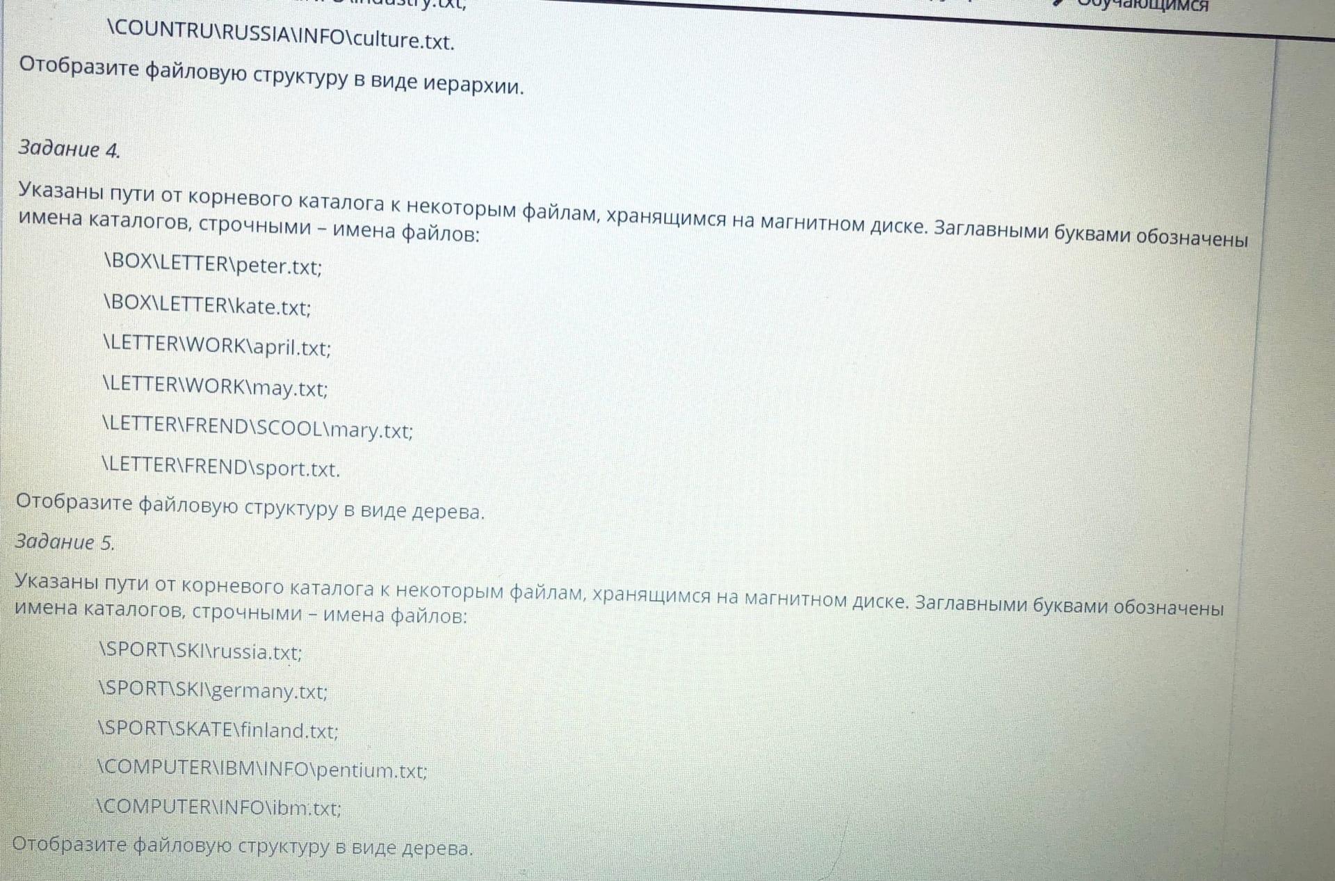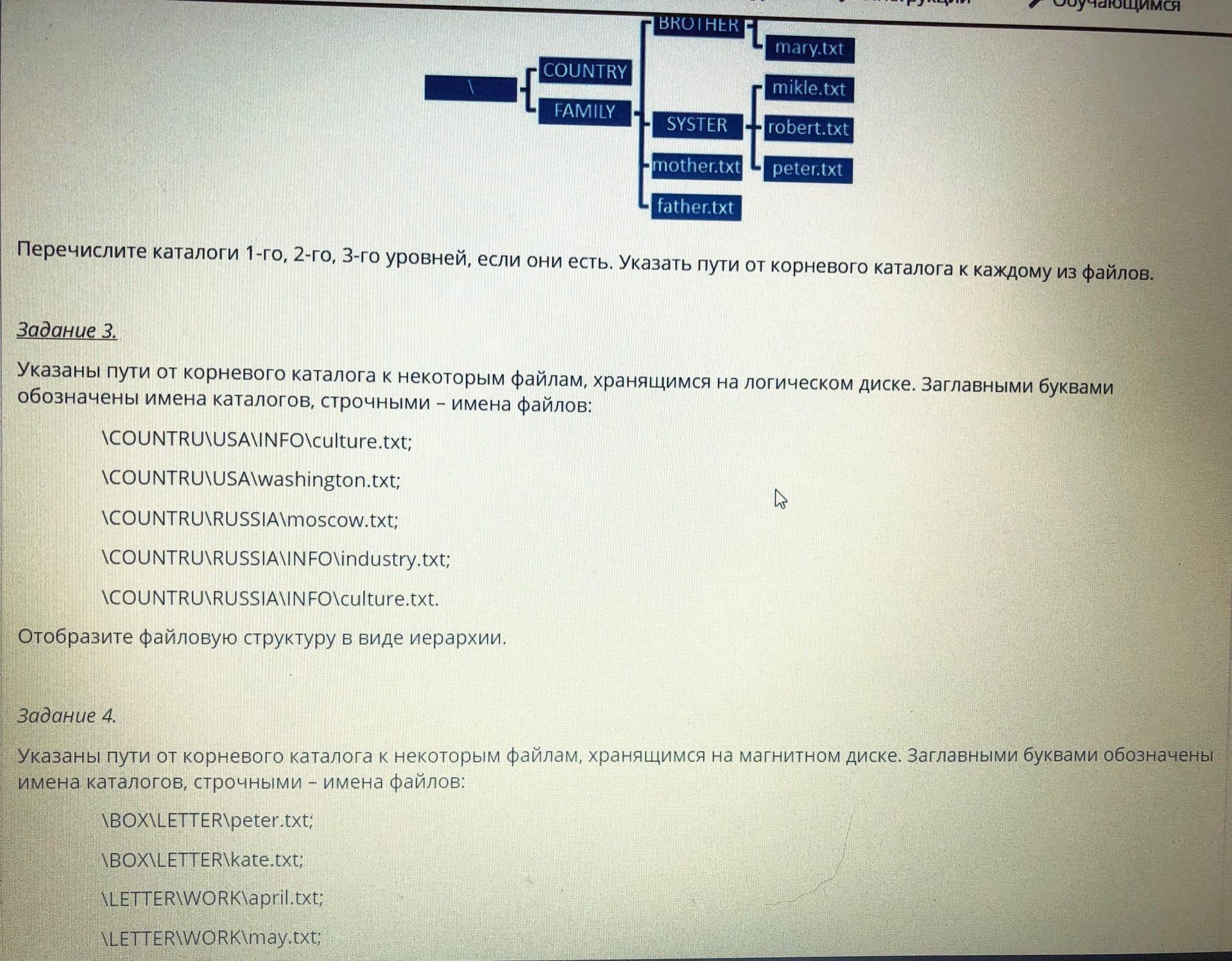 Перечислите каталоги 1-го, 2-го, 3-го уровней, если они есть. Указать пути от корневого каталога к каждому из файлов.