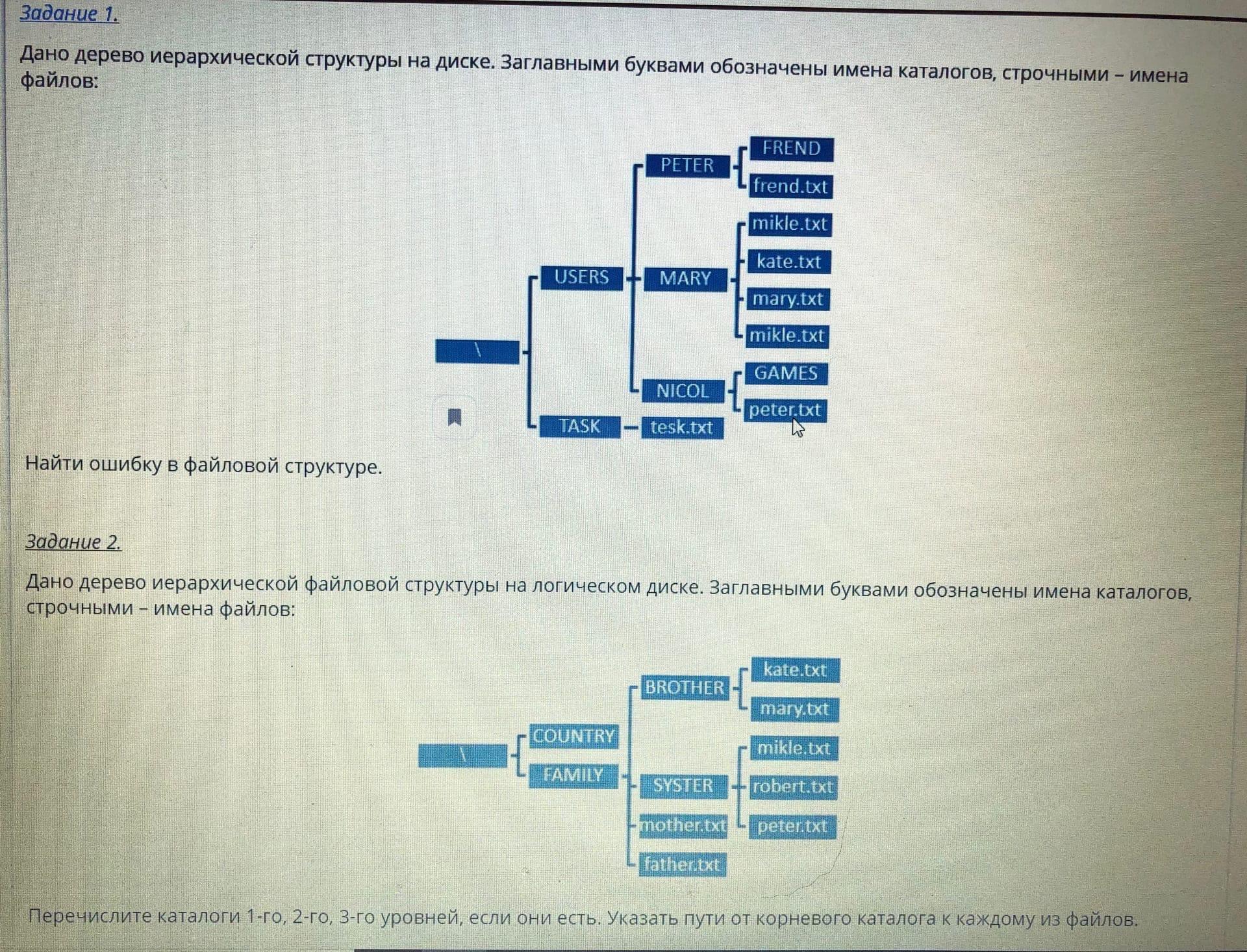 Дано дерево иерархической файловой структуры на логическом диске. Заглавными буквами обозначены имена каталогов, строчными – имена файлов: