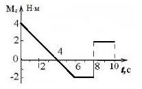 На рисунке представлен график зависимости проекции вращающего момента силы, действующей на тело, от времени. На каком из интервалов времени тело вращалось равнозамедленно?