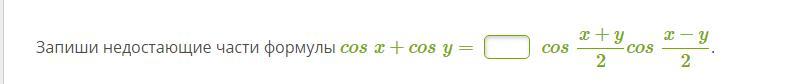 Запиши недостающие части формулы cosx+cosy=...... cosx+y/2cosx−y/2.