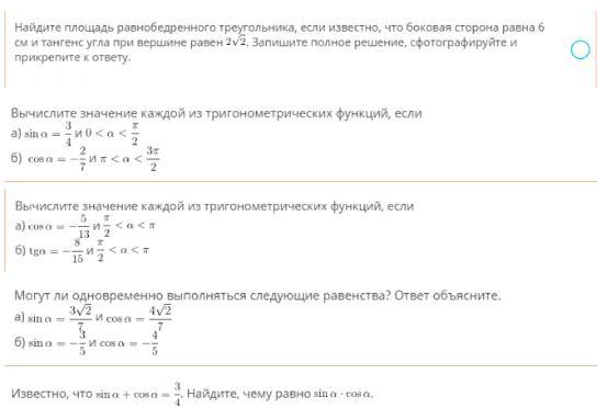 Помогите с тригонометрией, пожалуйста! С решением. какой сможете
