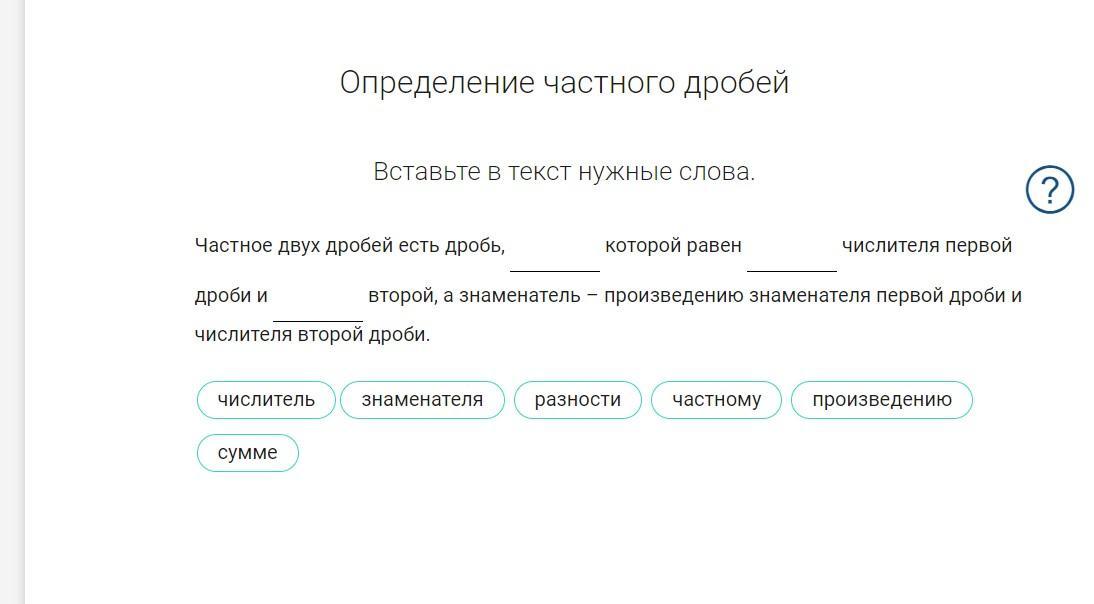 знаменателя который равен частному числителя первой дроби и произведению второй