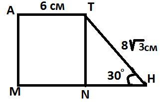 Гострий кут H прямокутної трапеції ATHM дорівнює 300, більша бічна сторона дорівнює 8√3 см, а менша основа трапеції дорівнює 6 см. Знайдіть площу трапеції.