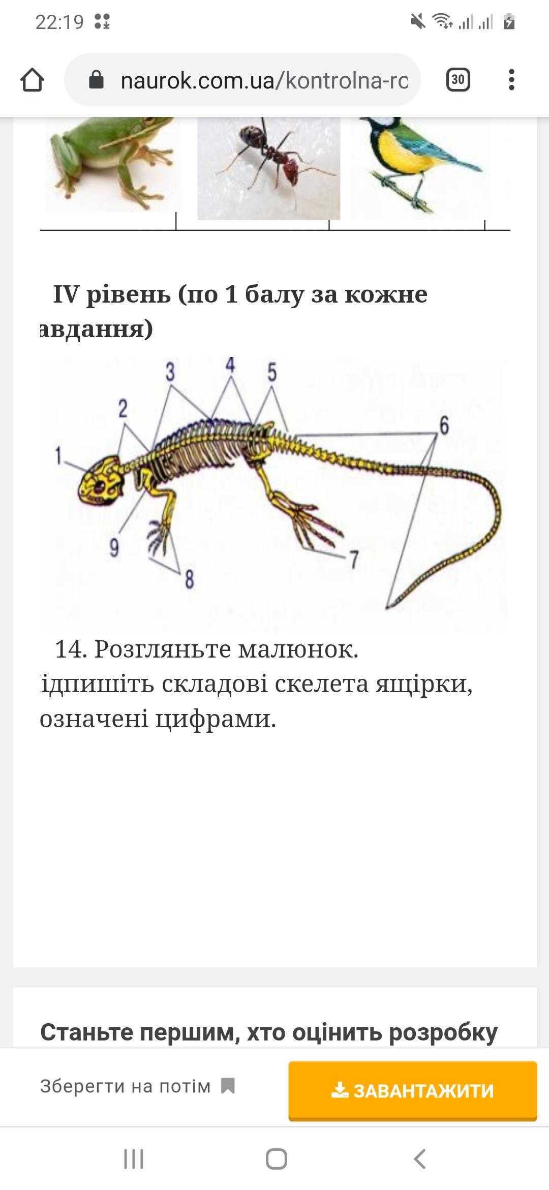 Розгляньте малюнок підпишіть складові скелета ящірки позначені цифрами