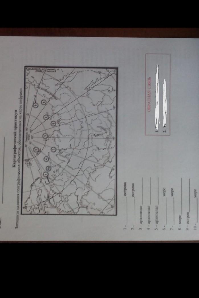 Запишите названия географических объектов обозначенных на карте цифрами(Островная Арктика)
