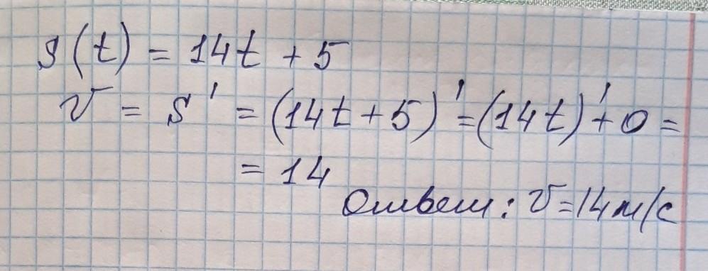 Закон движения точки по прямой задаётся формулой s(t)=14t+5, где t — время (в секундах), s(t) — отклонение точки в момент времени t (в метрах) от начального положения. Найди мгновенную скорость движения точки.
