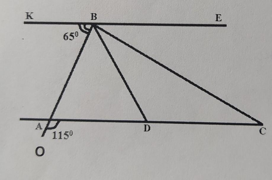 КВА=65°, угол DAO=115°, угол CBE=25°, BD - биссектриса