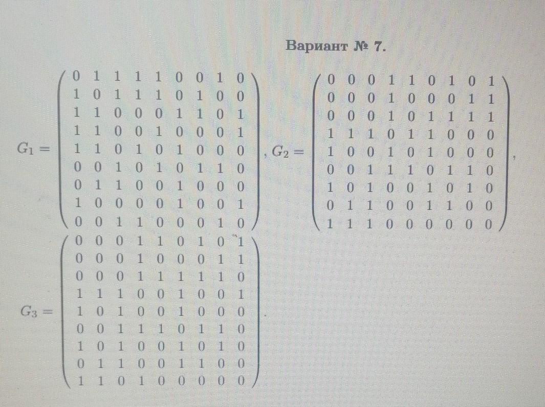 Графы заданы матрицами сиежности. Построить эти графы и граф G3т. Установить какие их этих графов изоморфны. Как это делать?