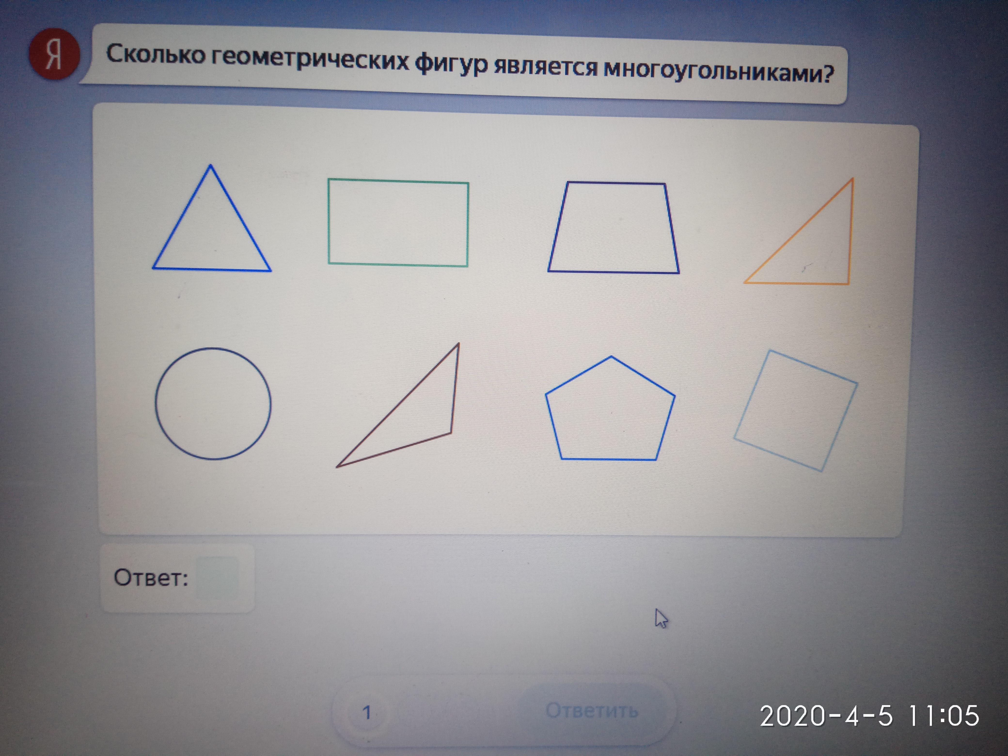 Здравствуйте.Помогите найти: сколько геометрических фигур является многоугольниками?