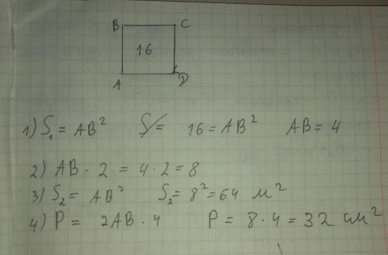 площадь квадрата равна 16 м^2. каждую сторону увеличили вдвое. чему равна площадь и периметр нового квадрата?