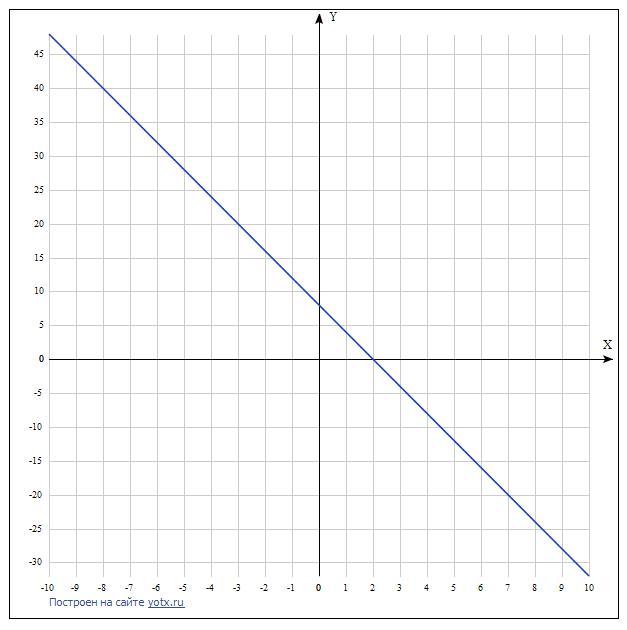 Постройте график функции, заданной формулой у = -4х + 8. С помощью графика найдите координаты точек пересечения графика с осями координат. Выберите верный ответ. *