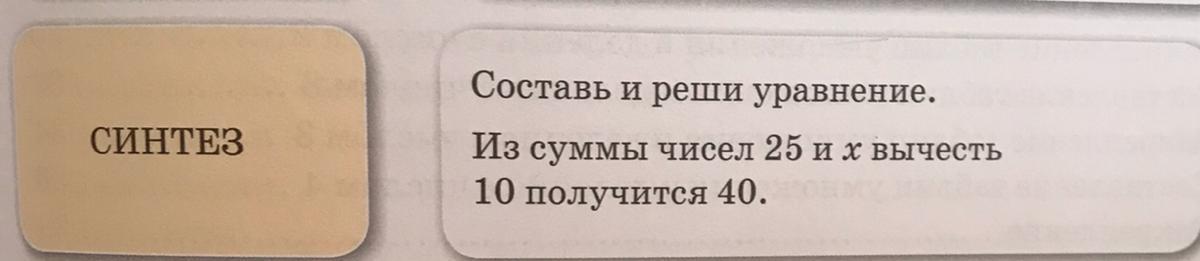 Из суммы чисел 25и х вычесть 10 получится 40.