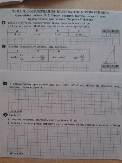1.пусть будет треугольник АВС, кут А=90 градусов, АВ=6 см, ВС=10 см, АС=?