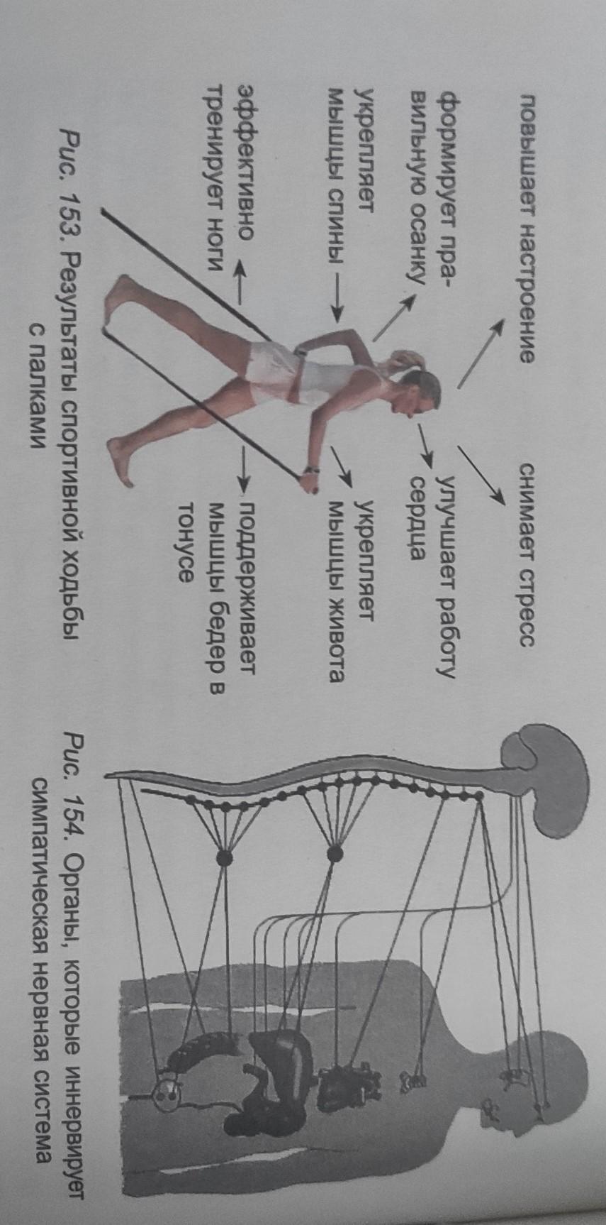 1. На рисунке 153 указано влияние спортивной ходьбы с палками на организм человека.Этот вид физической активности распространен у народов Скандинавских стран (финов,шведов и других).Исторически она происходит от пастухов и паломников, которые использовали палки при ходьбе.Назовите результаты ходьбы с палками.Почему человек достигает таких результатов?