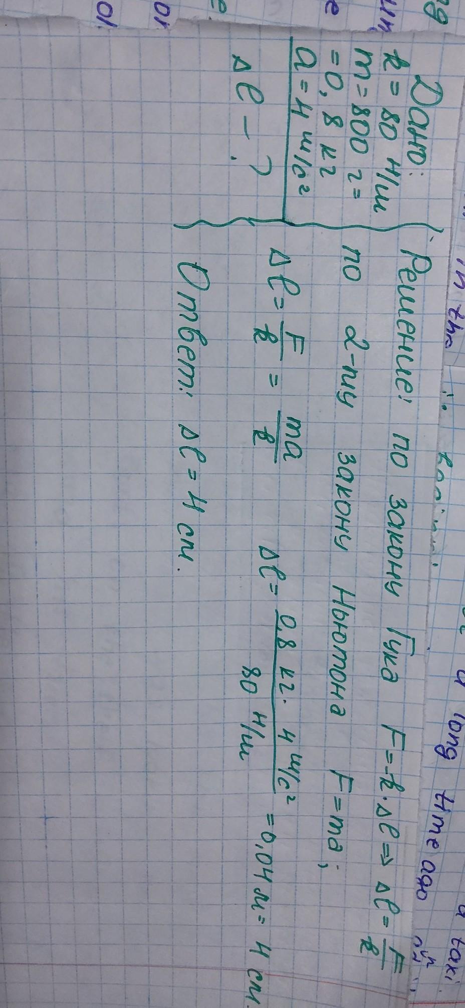 k=80 Н/м m=0.8 кг a=4 м/с2 x=?