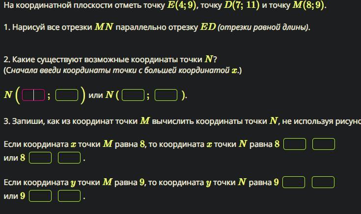 координата У точки N равна 9+2 или 9-2