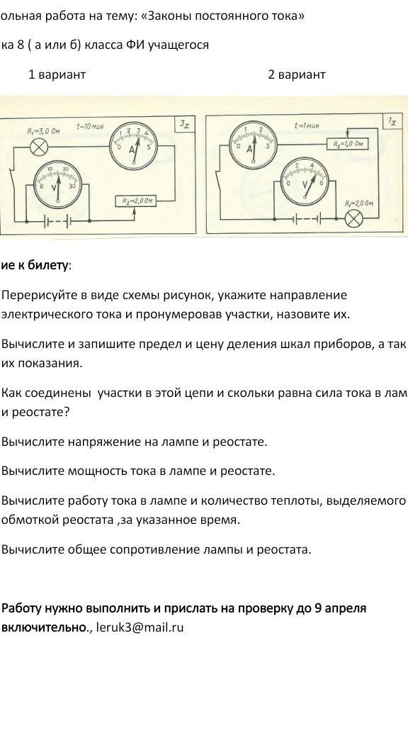 Помогите, пожалуйста решить физику. Тема"Законы постоянного тока" Первый вариант.